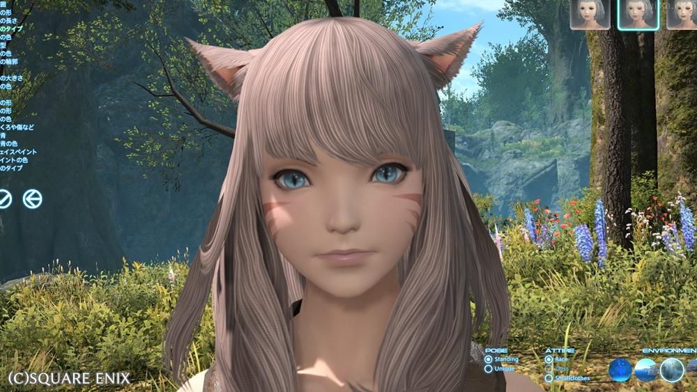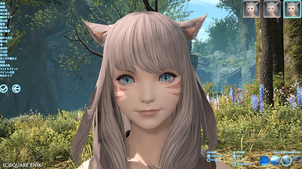 しかし、日本のプレイヤーは目の大きなアニメ調の要素をもつデフォルメキャラクターを愛する傾向がある(個人的な見解)ので、画面のクオリティを上げつつも、ミコッテ的な多少のデフォルメ感を維持しなければならない、という調整は非常に大変だったことだと思われます。