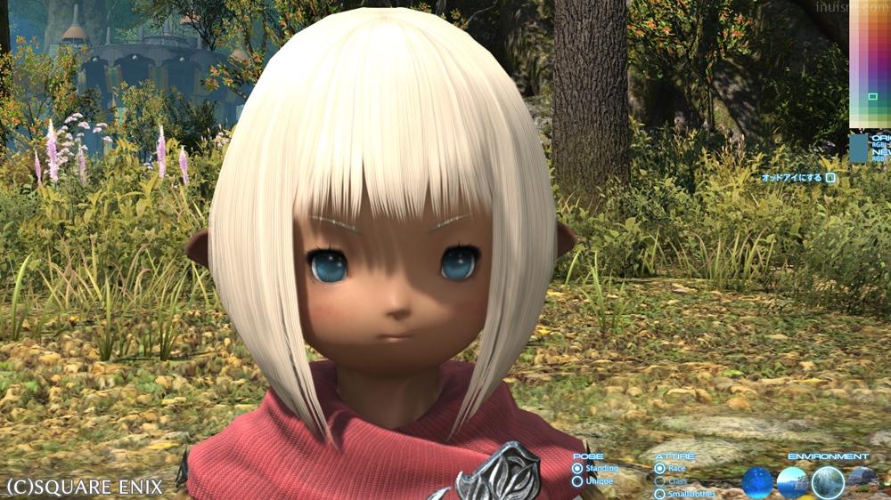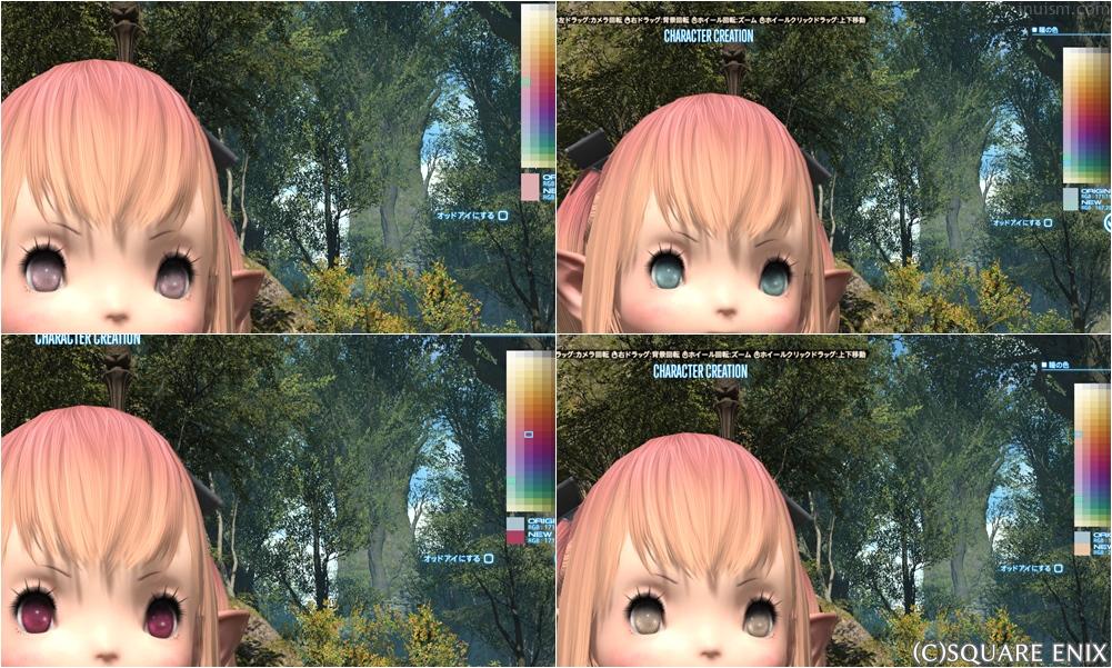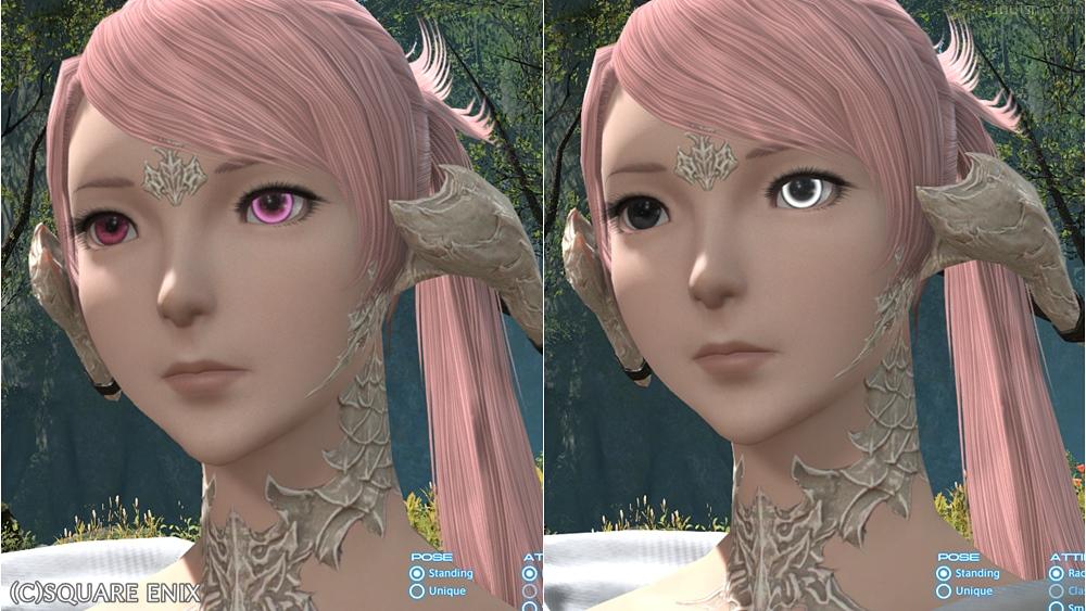 残念ながらララフェルの目が澱んでしまったようです。グラフィックアップデート後は、明らかにグレーを混ぜた感じで彩度が下がっています。目の模様も入っているので、ガラスのような瞳感は大分減ってしまいました。