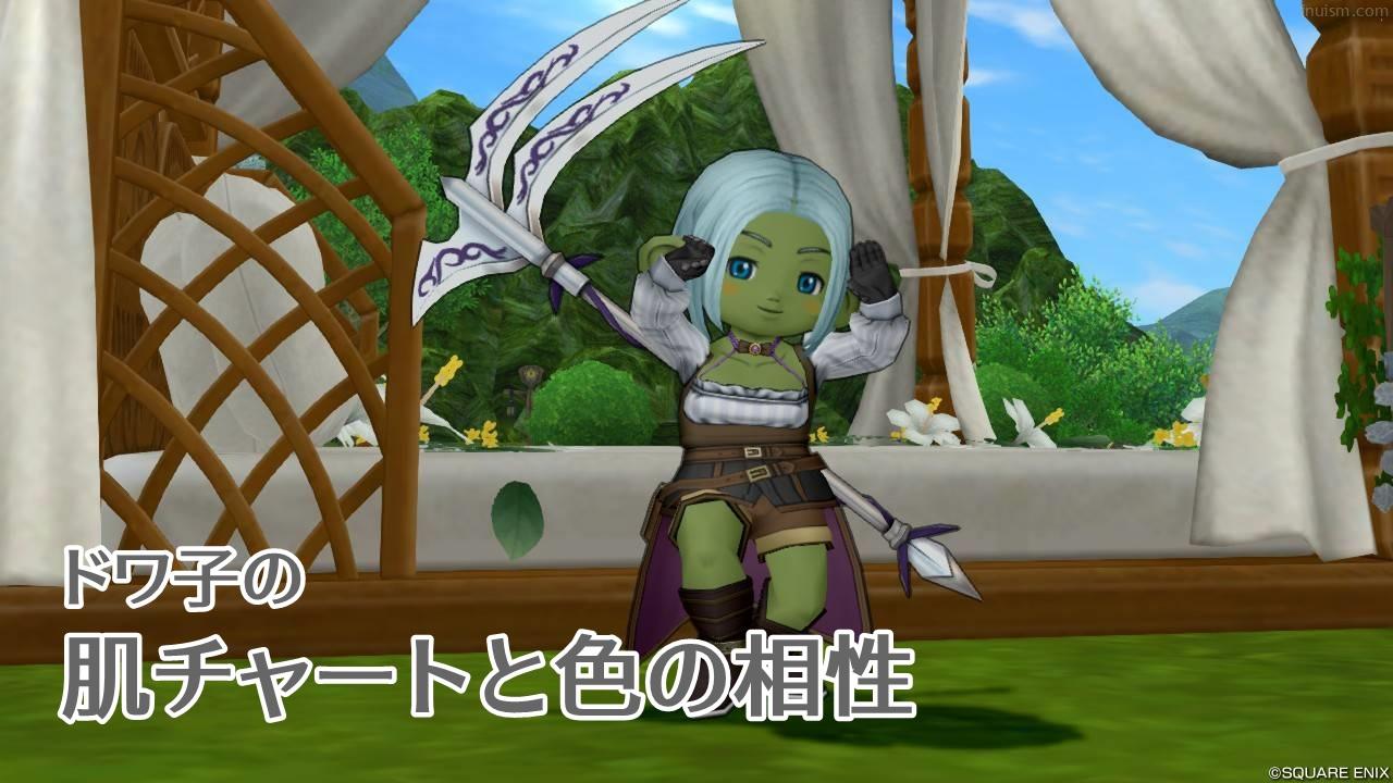 実際にゲーム内でチェックできるドワ子の肌カラーサンプルです。