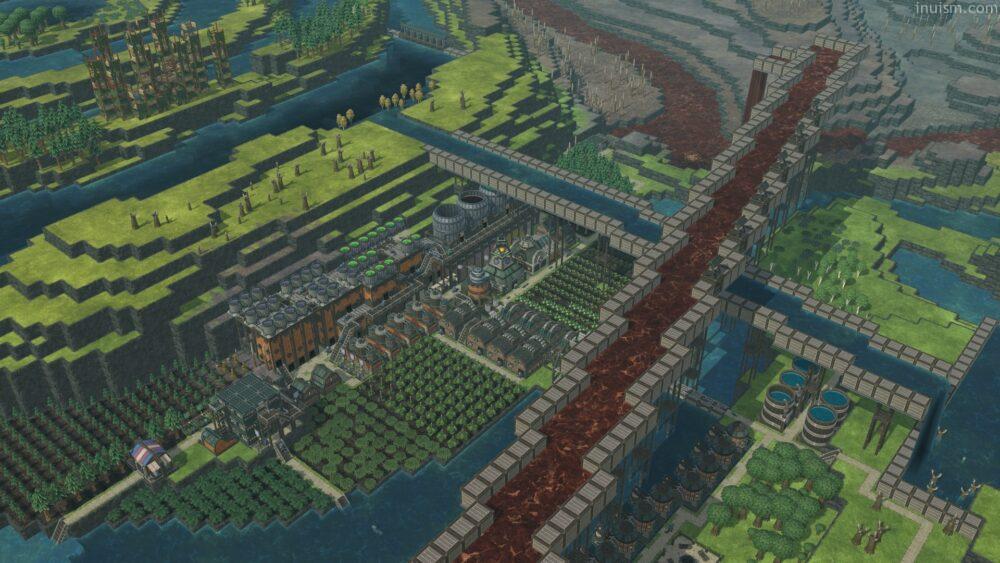 基本フィールドはボクセルで描かれたマップでありつつも、水は物理演算でかなり自然に流れたり溢れたりします。ビーバーや建物、植物は普通の3Dであり、それらが良い感じにミックスされた画面です。