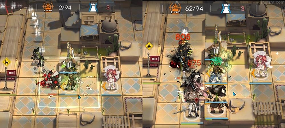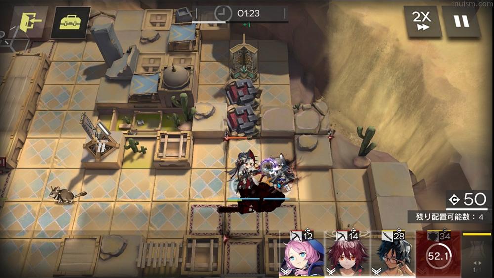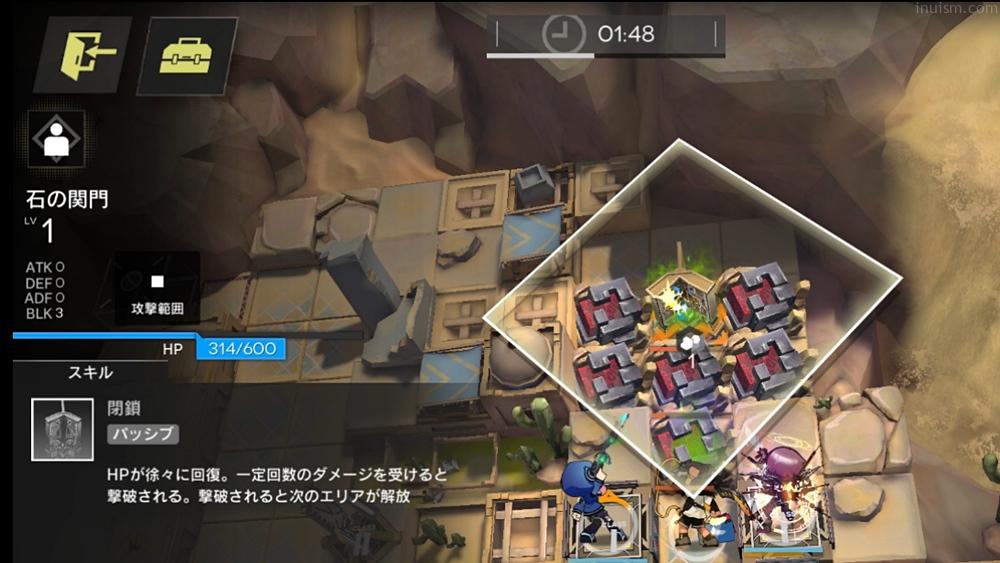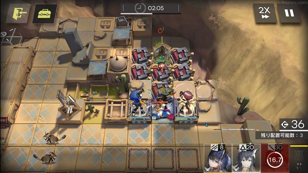 攻撃回数が多いオペレーターは、イベント「将進酒」で有効だったオペレーターが有効と思われる。スリップダメージや2回攻撃ができるオペレーターが強い。そう、強いんだけど場所的に石を破壊しないと地上オペレーターはほとんど置けないし、高台を自分でつくらないと高台オペレーターも置けない。