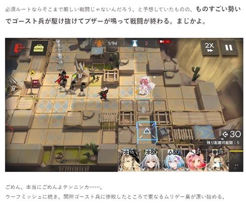 攻略の流れとしては、サクっとBigAdamを倒し、高台を設置して攻撃回数のあるオペレーターで関門を落とすという風になる。推奨オペレーターは、BigAdam対策としてスルトと、スタンのある異格テキサス。大量の獣も異格テキサスで一掃できる。