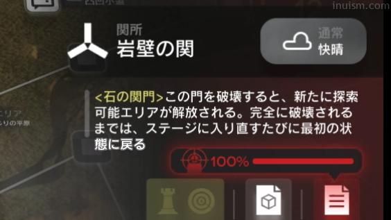 襲撃のクリアでもう関所が通過できるような気がしていたのだけど、ちゃんとマップ内の関門をこわさないとダメらしい。前回ウーフミッシュの「号令ポイント」は数回の戦闘でこわすことができたのだが、この関所は文面を見る限り1回の戦闘で叩き潰さないといけない模様。