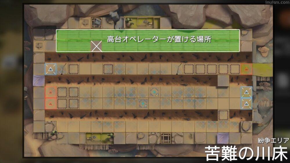 かなりクセのあるマップで、高台配置可能な場所がマップの北だけになっている。
