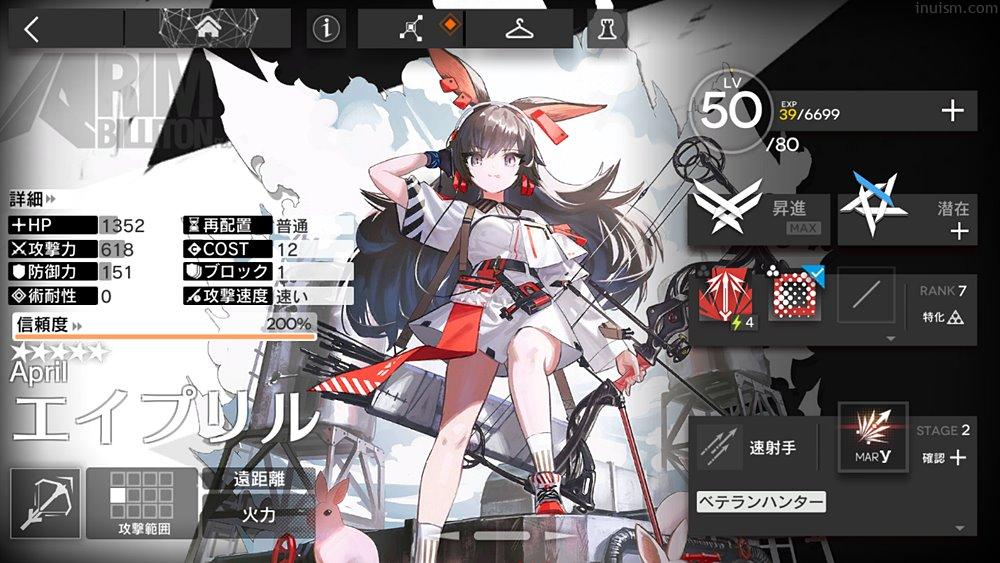今回の日記更新分から、★5速射手であるエイプリルを育成して使用し始めた。