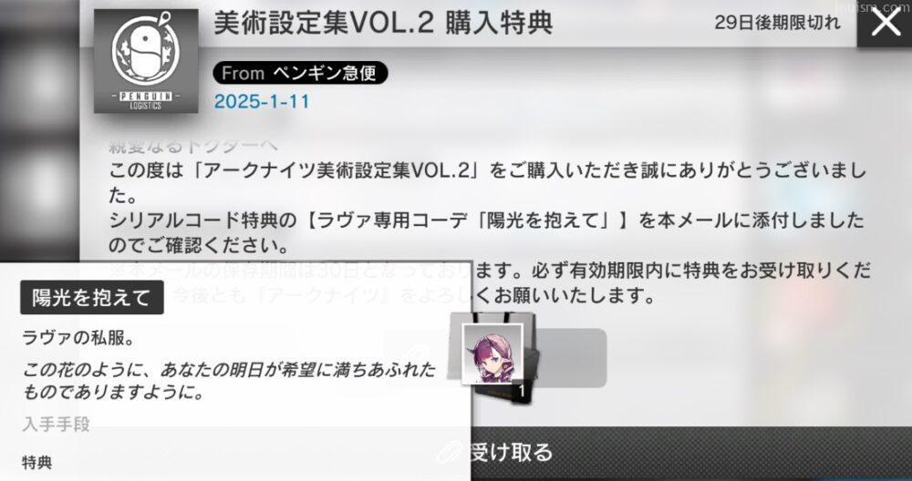 この下に、メインである美術設定集2とスペシャル小冊子「テラ雑談記録VOL.2」、ラヴァ専用コーデ「陽光を抱えて」のコードが入っています。