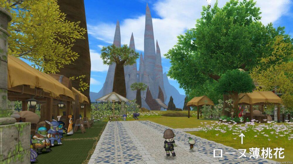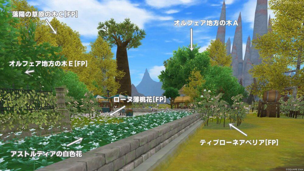 周囲の遠景に関しては、黄緑色の「落葉の草原の木C(DQXショップ品)」を置きまくったことで、武骨な岩山もいい感じの草原っぽい雰囲気にしてくれているように思います。