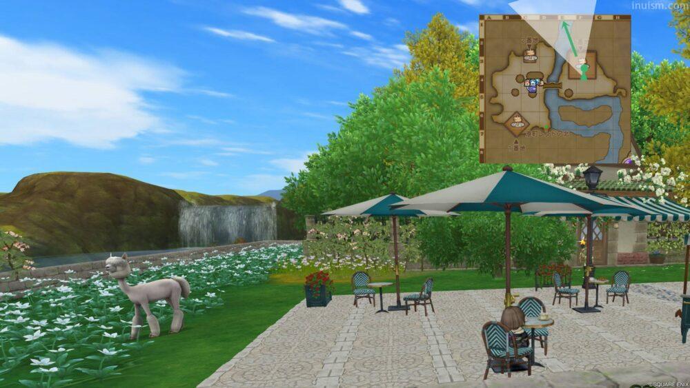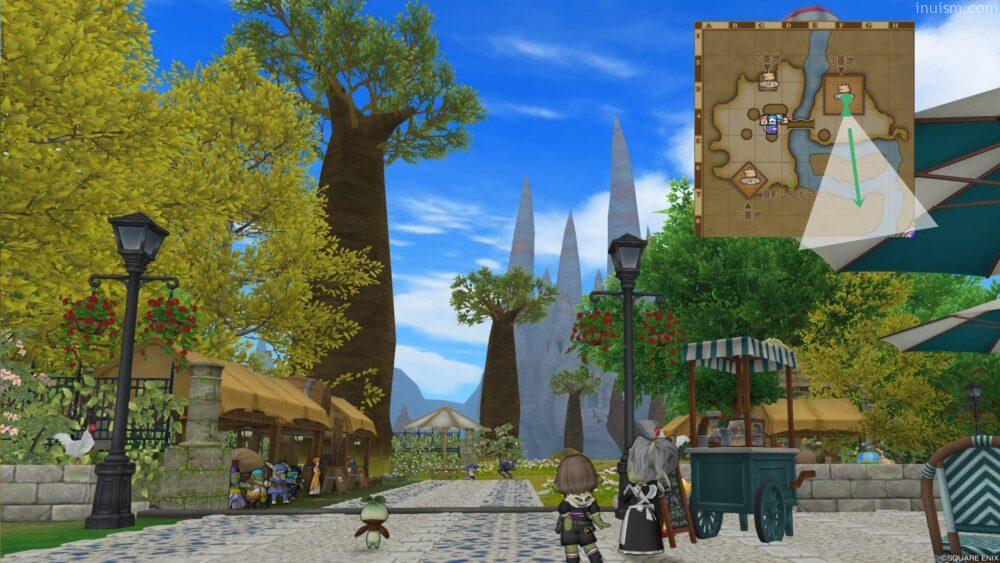 この整地に伴い、住宅村にあった郵便NPCがいたテントが撤去、そして5番地そばにあった大木が一本撤去されています。このことにより、住宅村では郵便テントの裏に隠れがちだった滝(地図のE-2あたり)が、かなり目立つようになりました。