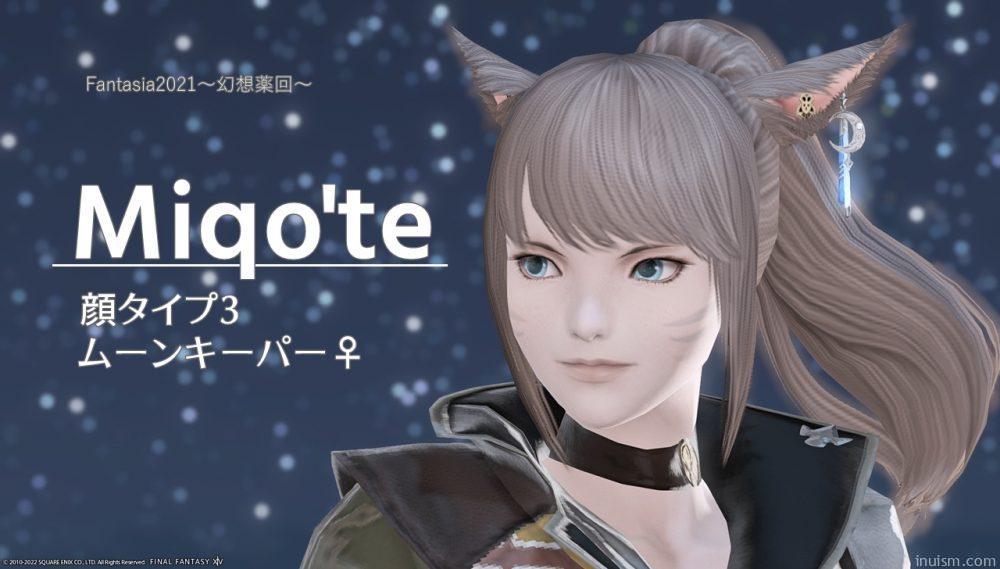 直近過去2回のミコッテ顔3(サン/ムーン)から、どうしたもんかなーと適度に悩みました。より白毛が映えそうということでムーンにすることとなり、色々迷った後に顔3にしよう~とういことで2021年ムーンキーパー回の反省から組み立てていくこととなりました。