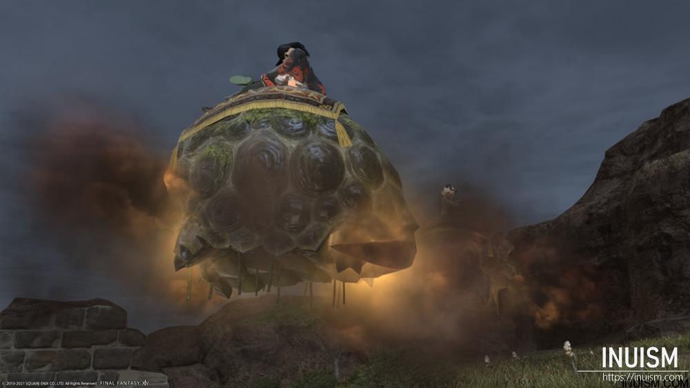 歩いたらカメ、飛んだら炎を出しながら高速回転しているというこのマウント。強烈なためか地味に人気があるらしく、乗っているプレイヤーをよく見かける。そのたびに「フフッ」と笑ってしまうくらいインパクトが強い。