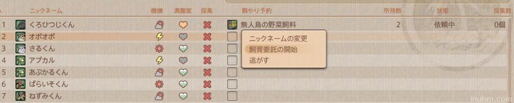 解放された飼育装備は、島から採れる素材で普通に作れるので作成して「ぼくちくくん」に渡す(話しかける)と、「飼育委託」が解放されました。