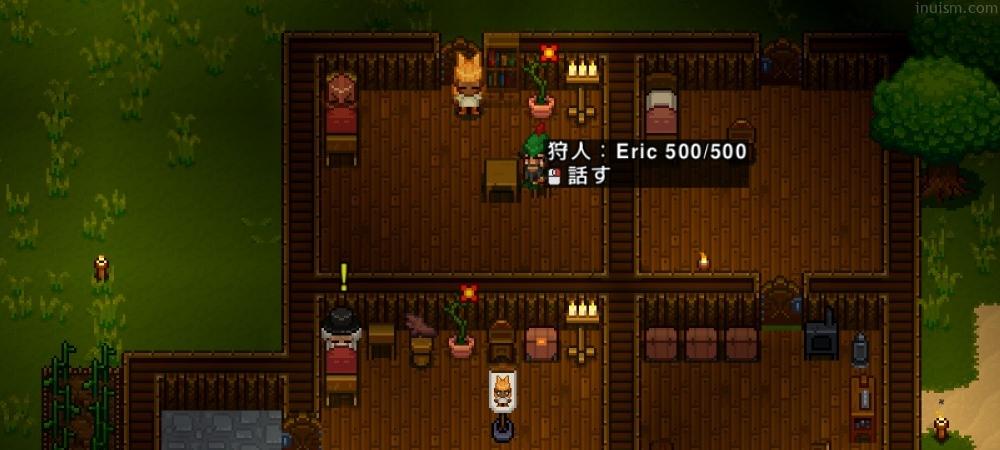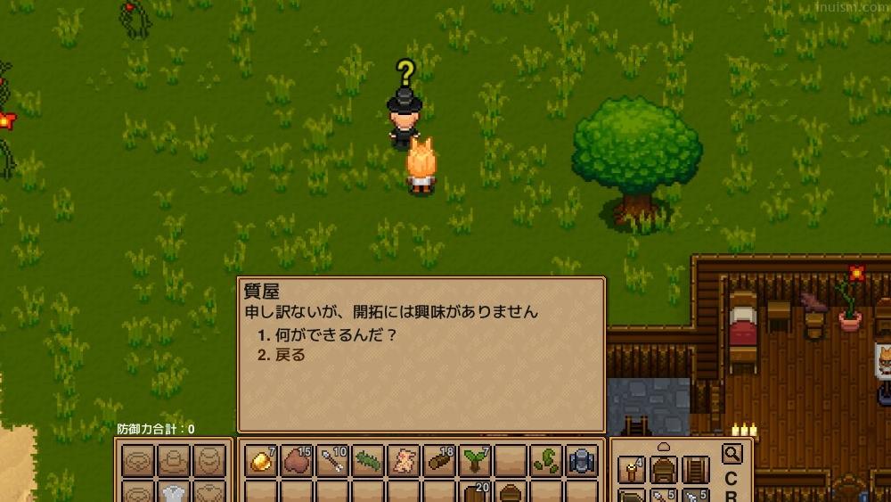 別の人、というと最初からウロウロしている強そうな狩人がいるのだが、雇う条件が結構厳しいため村民になってもらうことは叶わず。そんな中、開拓地にやってきたのは質屋。