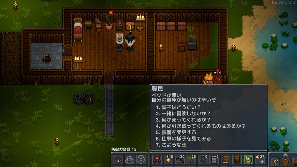 村人の不満には換えられないので、ベッドを開放することにする。寝る場所の無い村長と自分が、満足げに寝ている農民Tiaraを眺めるという異様な風景がそこにあった。腹が減ってきたな。
