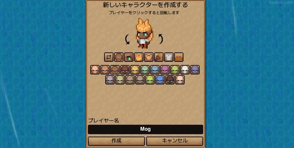 ワールド、キャラクターの順に作成していく。※ちなみにマルチプレイもできる。