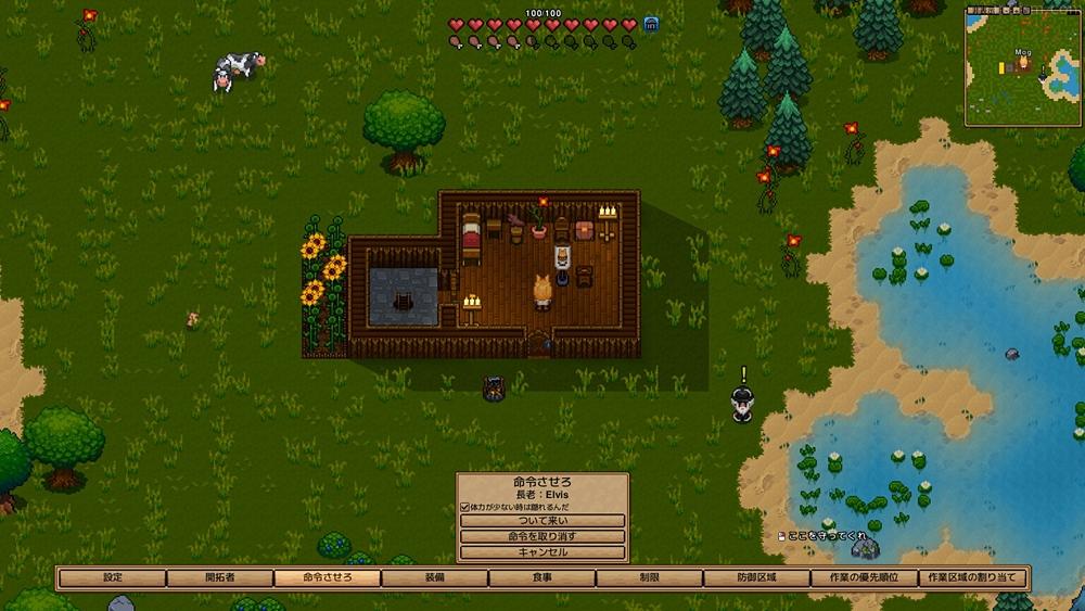 チュートリアルの旗を建てたことで、村人に命令を下せるようになった。