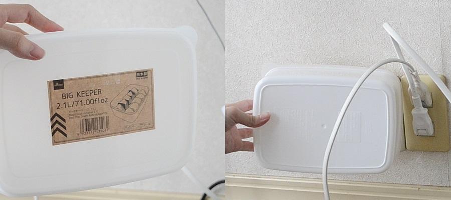コンセントが2つ並んでいるので、サイズ的に弁当箱を使いました。