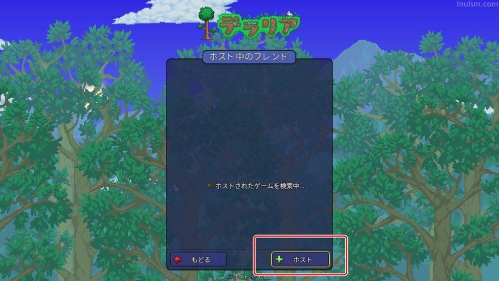 プレイヤーを選択したら「ホスト中の」フレンドを検索する画面になります。