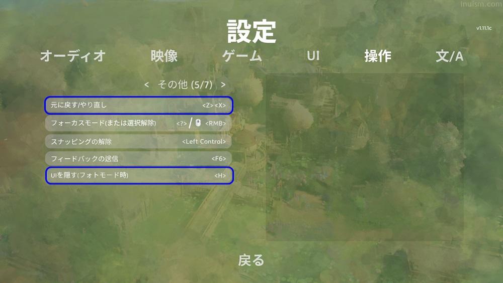 デフォルトのままなら、元に戻すがZキー、やり直しがXキー、UIを隠すがHキーとなっています。